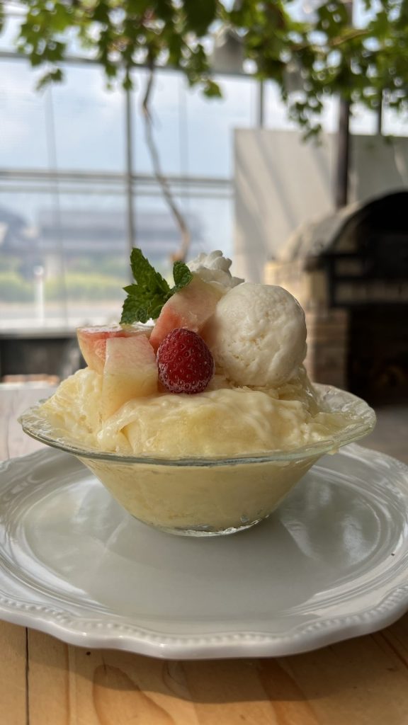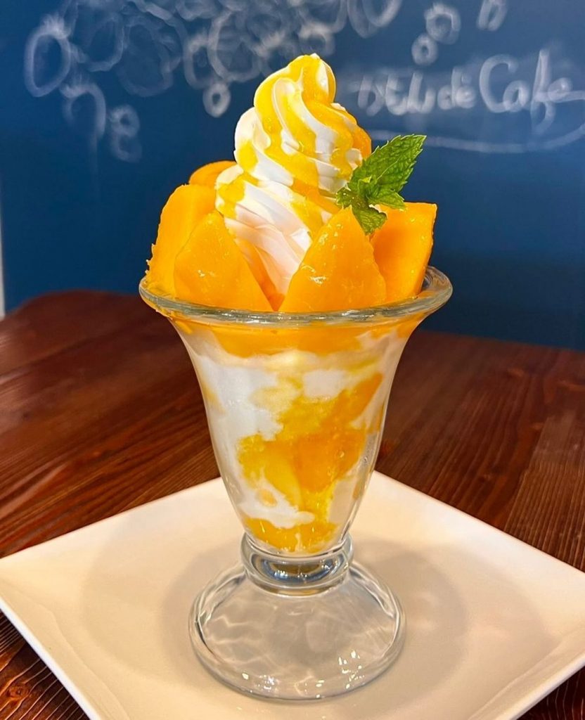 蒜山ジャージー牛乳の自家製アイスと合わせて瑞々しいマンゴーを是非ご堪能下さい♬*゜